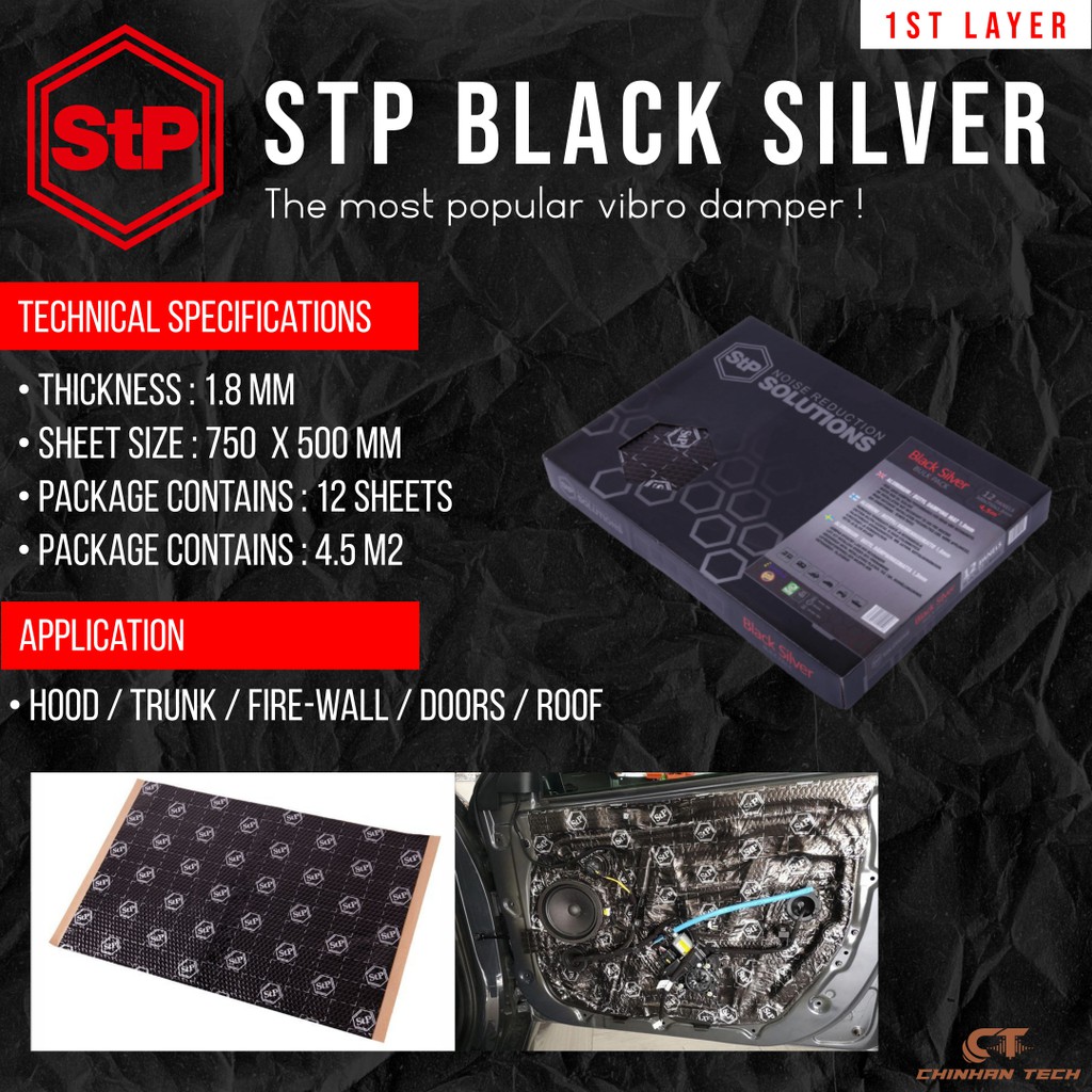 STP Black Silver - 1 Sheet Heat and Sound insulating layer Car Soundproofing Noise Reduction Standartplast Russia 1.8mm